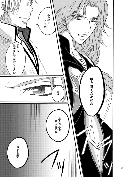 『華』 とにかく難産だったこの1本。ギンというキャラの難しさを痛感しました。今読み返してもまだまだ、と感じますがこれが今の私の精一杯とも言え、ある意味ベストをつくせた1本でもあります。表紙はきぬもみという、絞りの入った凹凸のある用紙を使用。和風の仕上げにこだわりました。今回は表2・3(表紙の裏側ですね)に牡丹の花をあしらってあります。